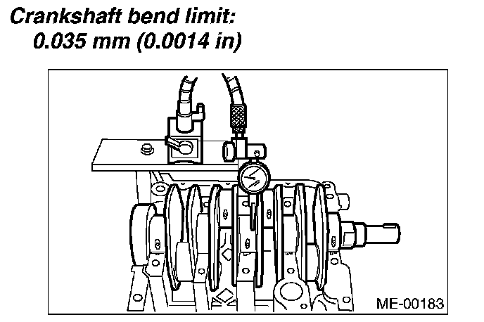 2. Measure the bend of crankshaft. If it exceeds the limit, repair or replace it.
