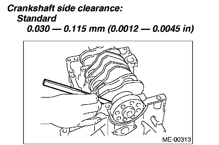 4. Measure the thrust clearance of crankshaft at center bearing. If clearance exceeds the limit, replace the bearing.