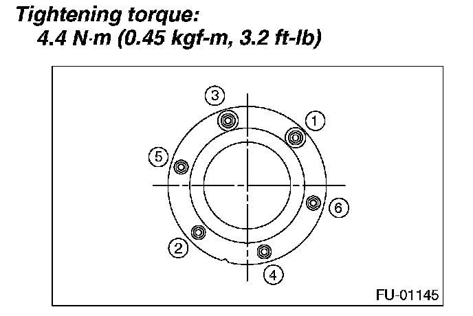 2. Tighten the nuts and bolts to specified torque in the order as shown in the figure.