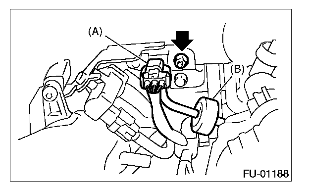 3. Disconnect the connector from manifold absolute pressure sensor (A), and remove the filter assembly (B) from intake manifold.