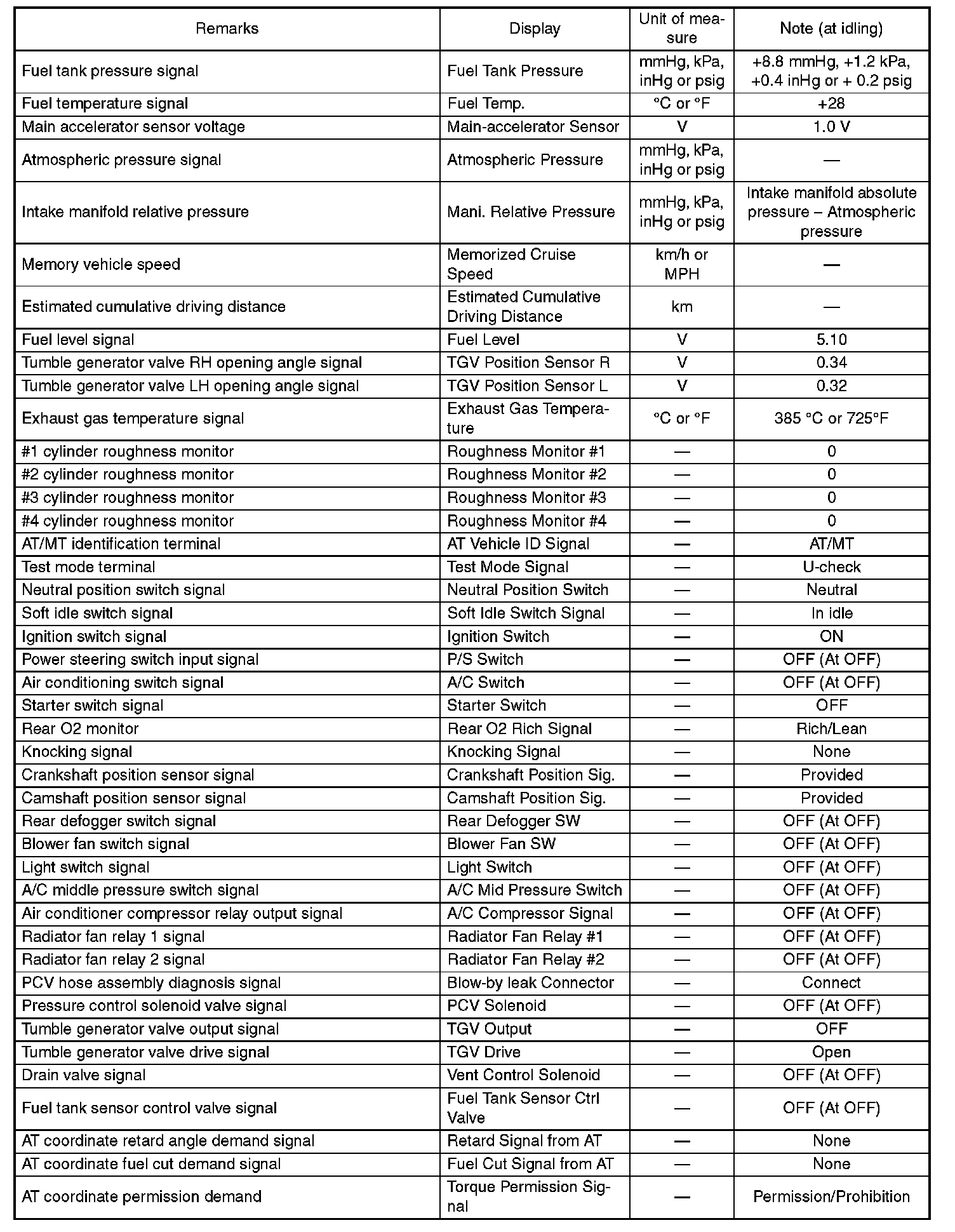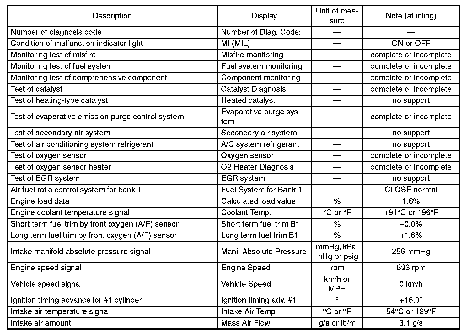 5. READ CURRENT DATA FOR ENGINE (OBD MODE)