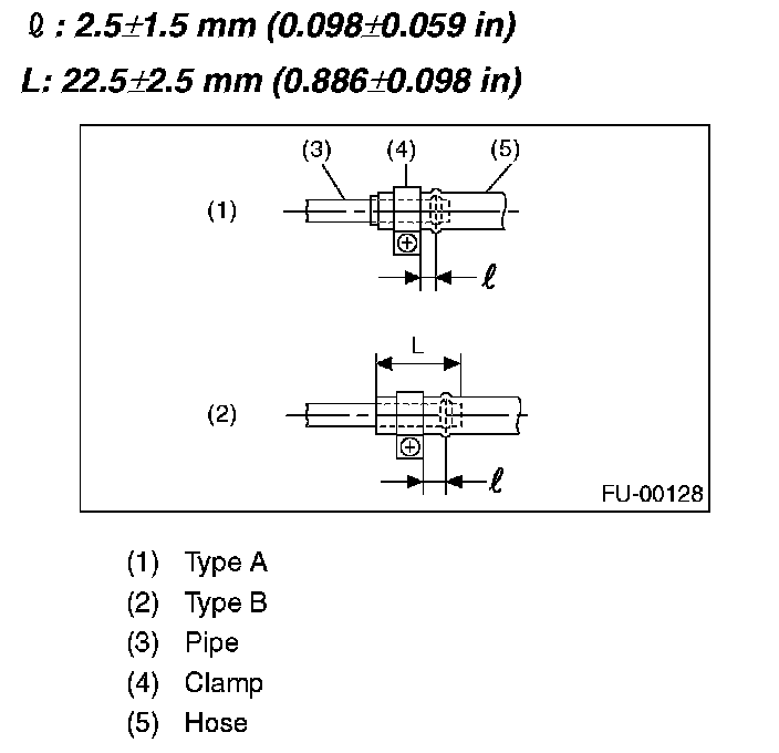 Fuel return hose: L = 22.5 ± 2.5 mm (0.886 ± 0.098 in)