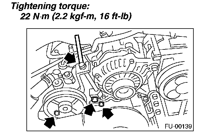 Tightening torque: 16 Nm (1.6 kgf-m, 11.6 ft. lbs.)