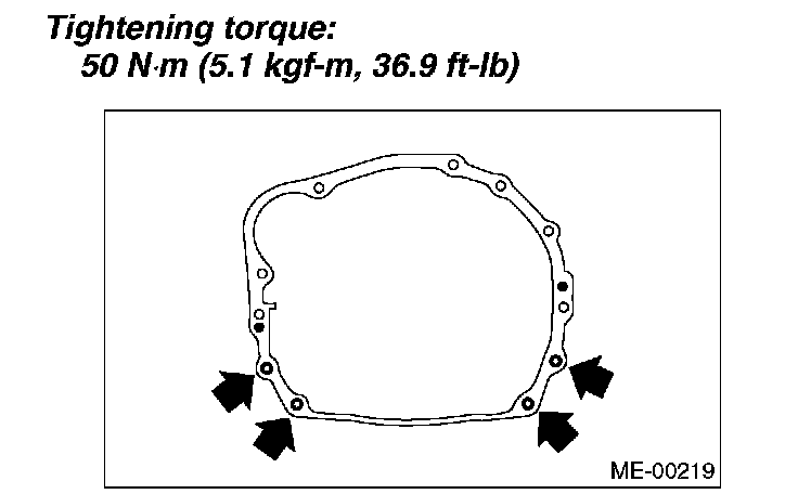 4. Tighten the bolts which hold upper side of transmission to engine.