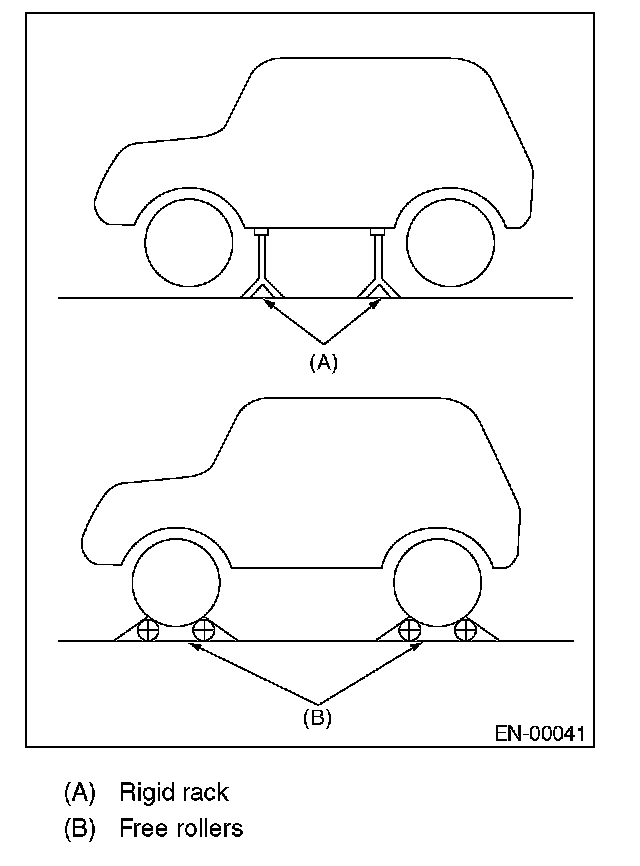 2. Lift-up the vehicle using a garage jack and place it on rigid racks, or drive the vehicle onto free rollers.