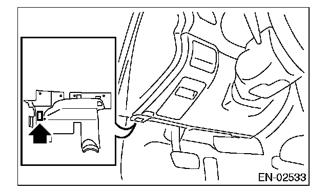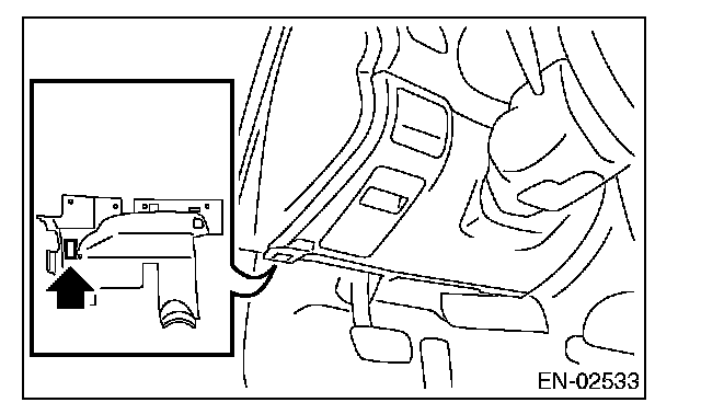 7. Connect the Subaru Select Monitor to data link connector located in the lower portion of the instrument panel (on the driver's side).