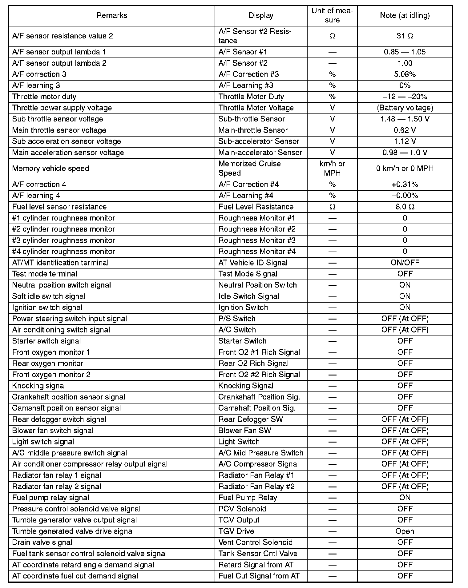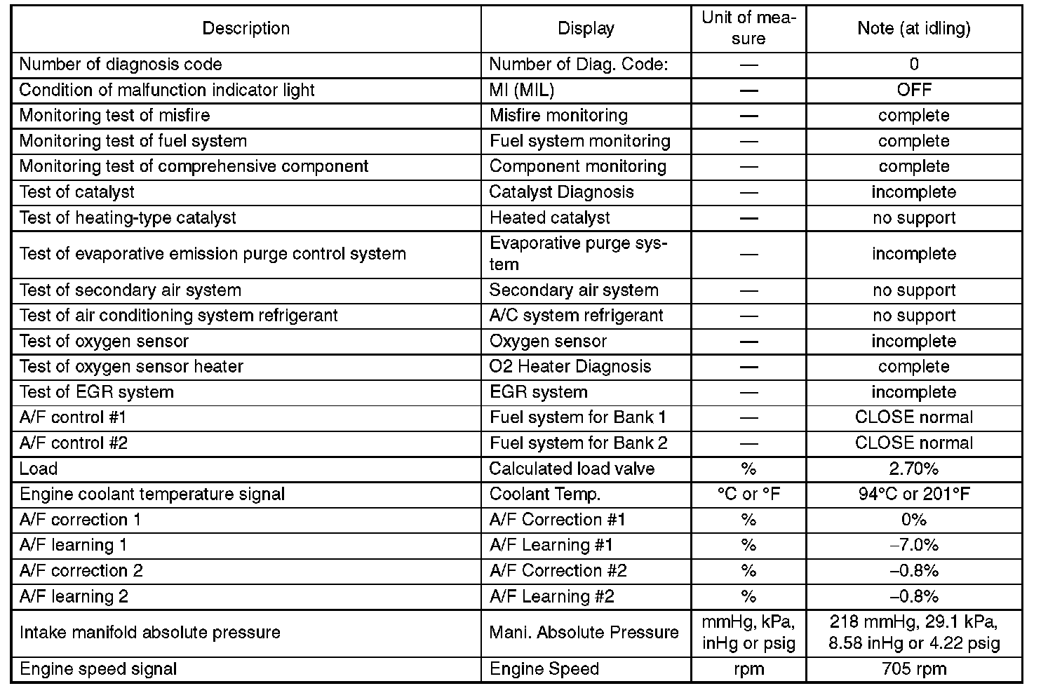 5. READ CURRENT DATA FOR ENGINE (OBD MODE)