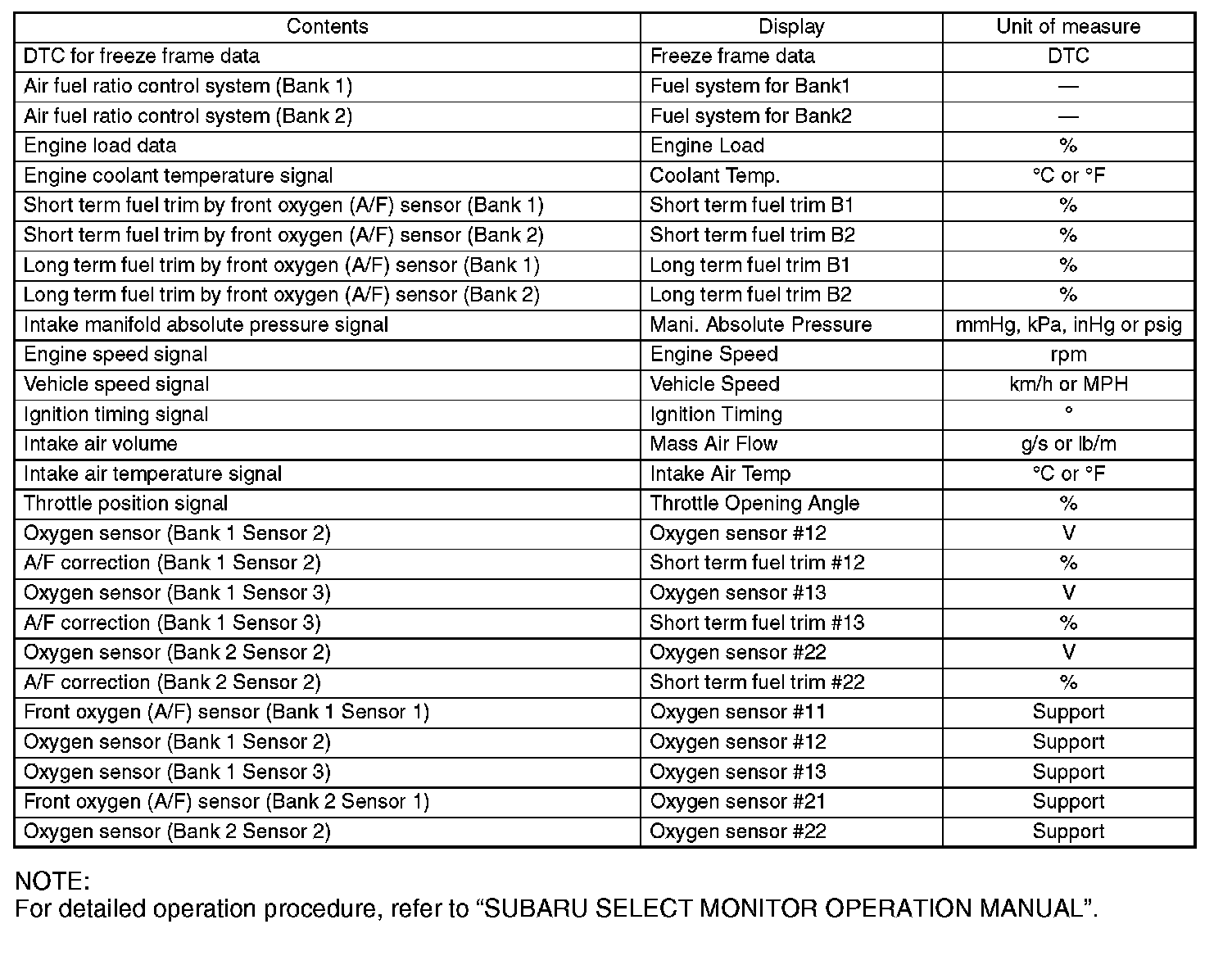 NOTE: For detailed operation procedure, refer to "SUBARU SELECT MONITOR OPERATION MANUAL".