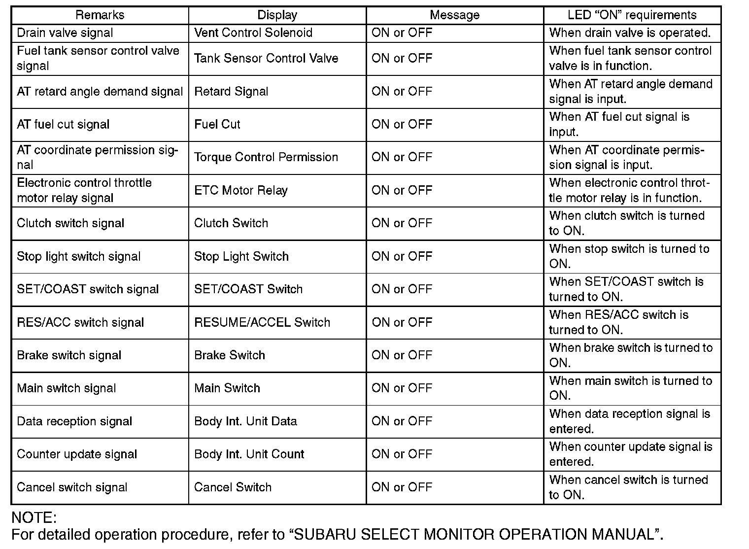 Subaru Select MonitorOPERATION