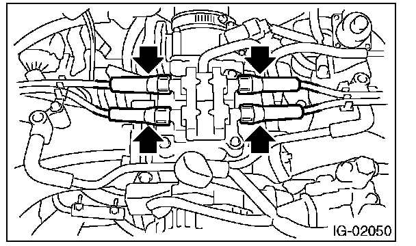4. Remove the bolt which secures the ignition coil and ignitor assembly to intake manifold.
