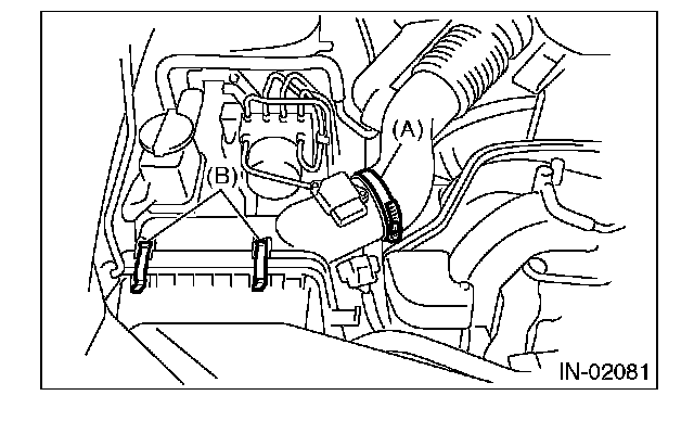 5. Remove the clip (B) from upper side of air cleaner case.