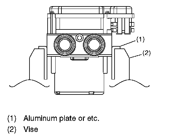 3. Set the pump motor part of removed ABSCM&H/U faces down on a vise.