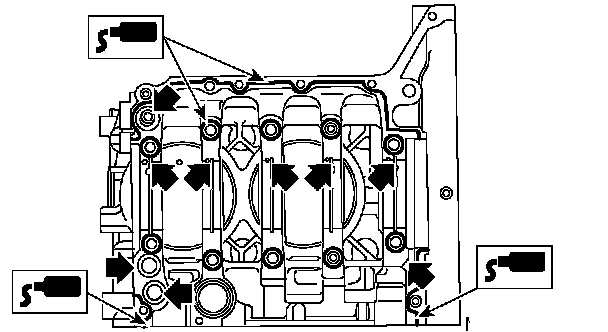 3. Tighten the 10 mm cylinder block connecting bolts on LH side (A-D) in alphabetical sequence.