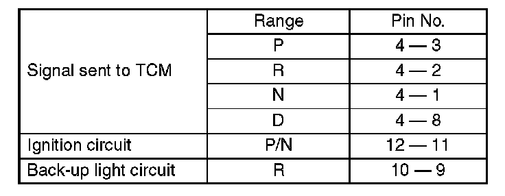 ^ Also check that continuity in ignition circuit does not exist when the select lever is in R and D ranges.