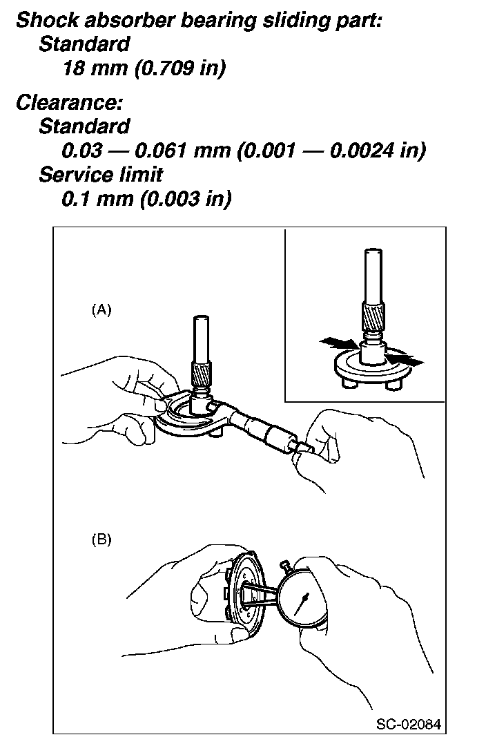 Then, measure the inside (B) diameter of shock absorber bearing, and calculate the clearance.