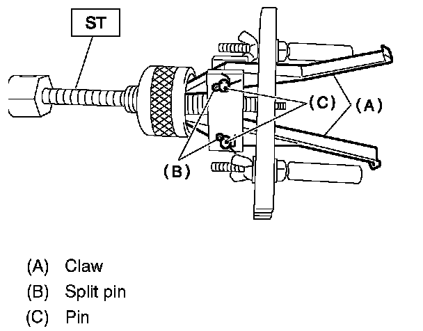 3. Remove the split pin, and then remove the claw.