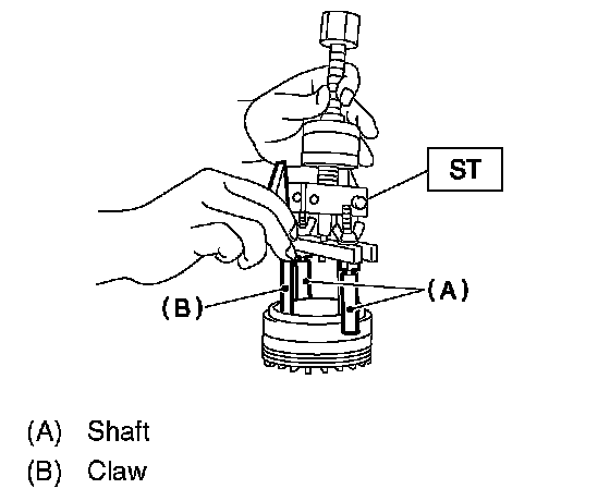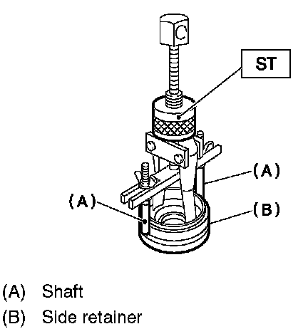 6. Hold the shaft of ST to avoid removing from side retainer, and then remove the bearing outer race.
