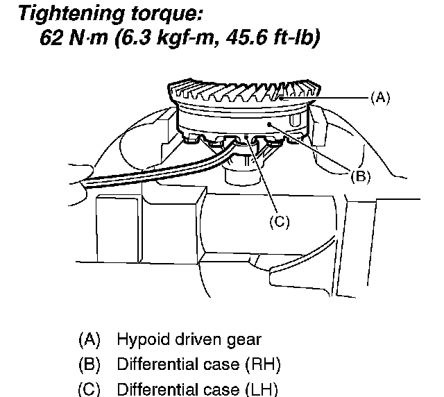 Tightening torque: 62 Nm (6.3 kgf-cm, 45.6 ft. lbs.)