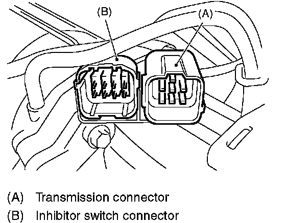 9. Insert the inhibitor switch and transmission connector to the stay.