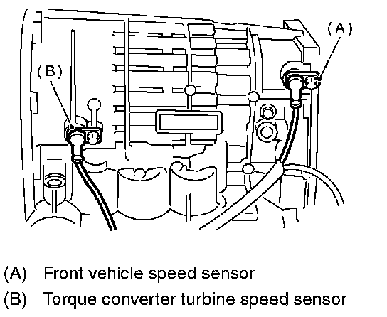 18. Remove the front vehicle speed sensor and torque converter turbine speed sensor.