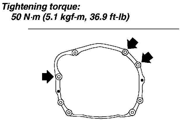 Tightening torque: 50 Nm (5.1 kgf-cm, 36.9 ft. lbs.)