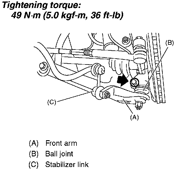 Tightening torque: 49 Nm (5.0 kgf-cm, 36 ft. lbs.)