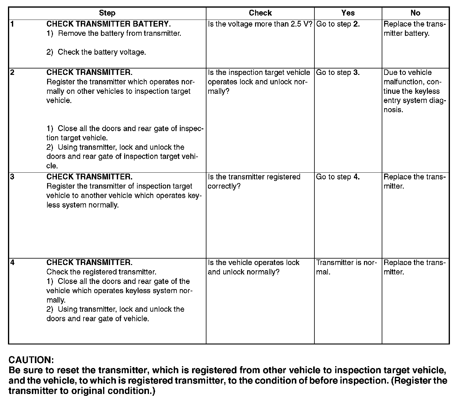 Check Transmitter Battery and Function