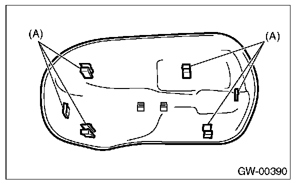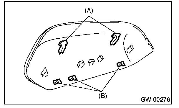 2. Press-in the clips (A) from inside of door mirror.