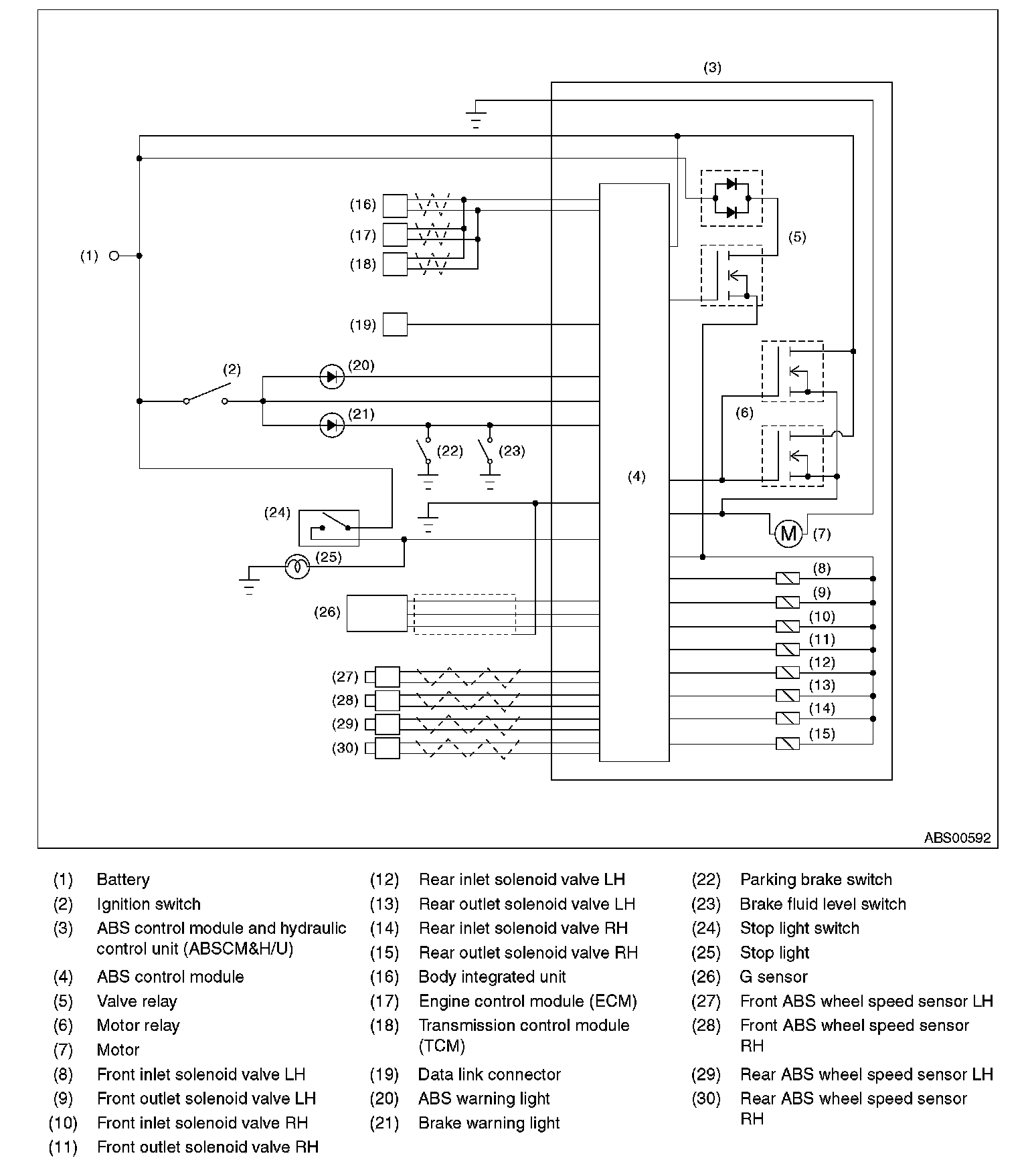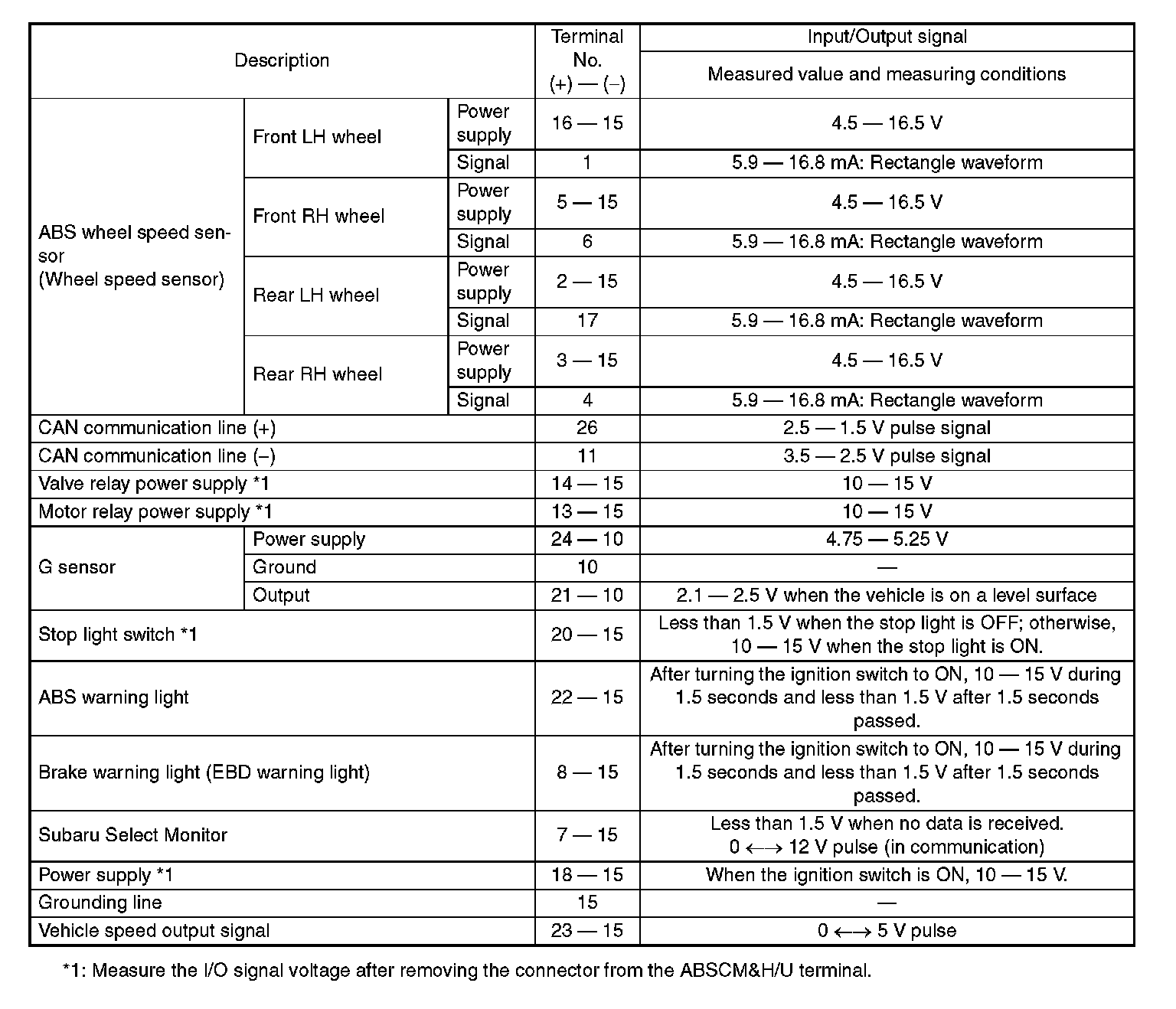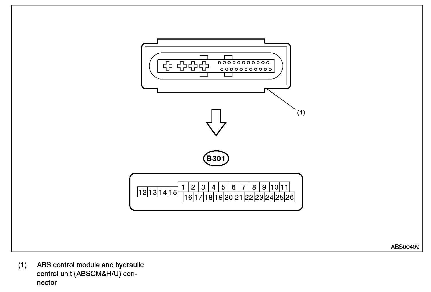 Terminal numbers in ABSCM&H/U connector are as shown in the figure.