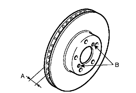 NOTE: If the disc rotor seizes up within hub, drive the disc rotor out by pushing with an 8 mm bolt in holes B on the rotor.