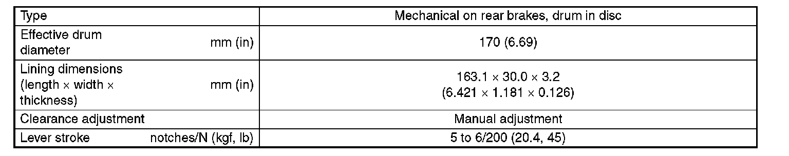 Parking Brake System: Specifications