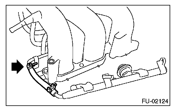 7. Remove the bolts which install fuel pipes on intake manifold.
