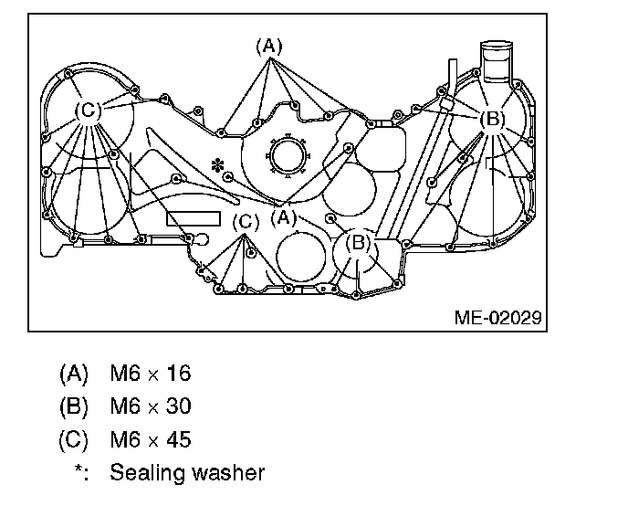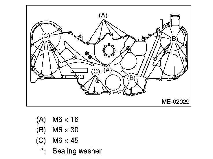 NOTE: Chain cover installation bolt has three different sizes. To prevent the confusion in installation, keep these bolts on container individually.