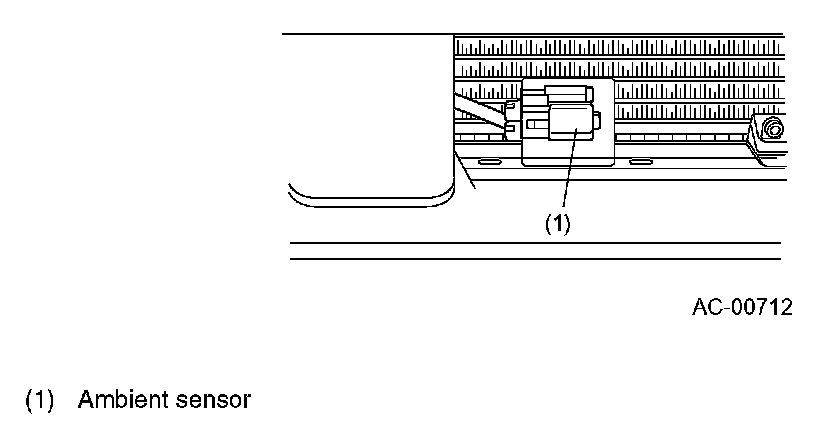 AMBIENT SENSORThe ambient sensor uses a thermistor to detect the ambient temperature and outputs a signal corresponding the detected temperature to the auto A/C control module.