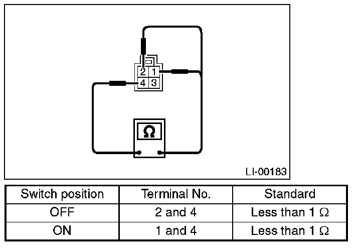 Measure the resistance between parking switch terminals.