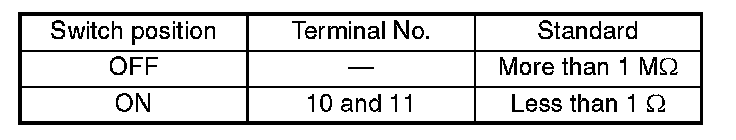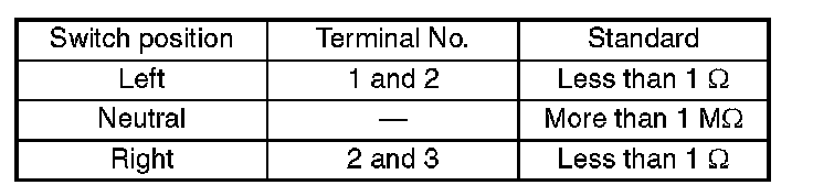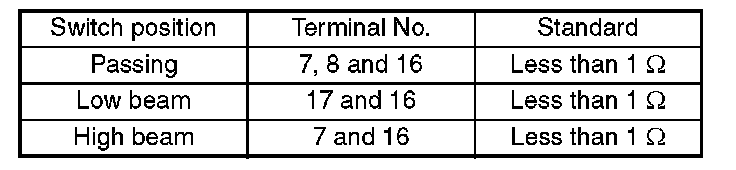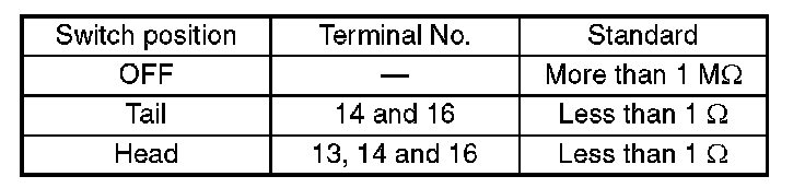 INSPECTIONMeasure the resistance between combination switch terminals.