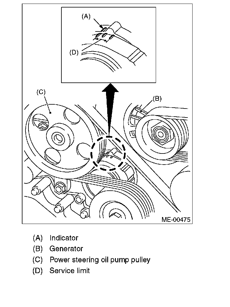 2. Check that the V-belt automatic belt tension indicator (A) is within the range (D).