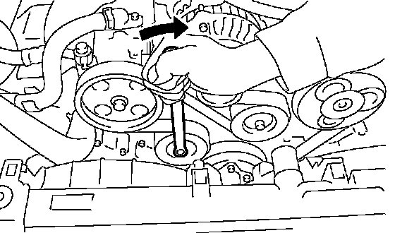1. Install the tool to belt tension adjuster assembly installation bolt.