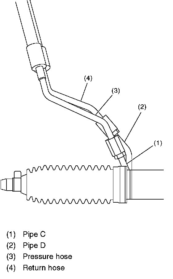 5. Disconnect the return hose and pipe D, pressure hose and pipe C.