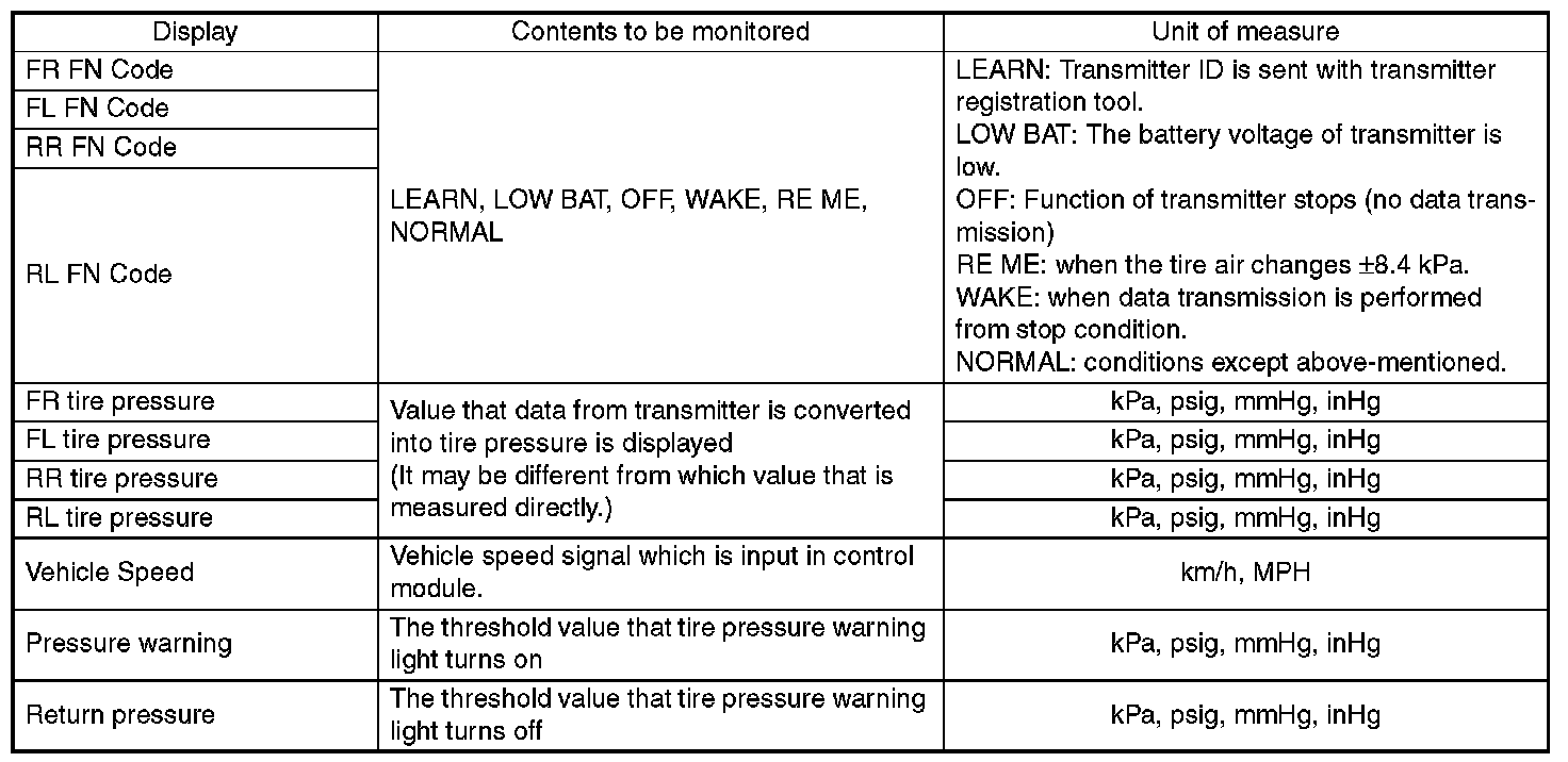 - While tire rotation, no registration for transmitter (ID) does not affect to performance and function of tire pressure monitoring system. However tire position is not displayed in the Subaru Select Monitor correctly.