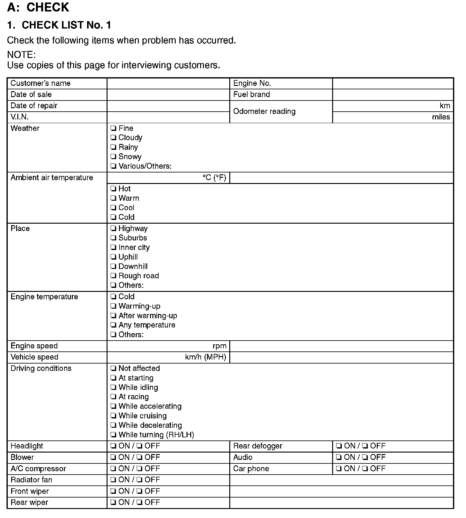 Check List No.1: