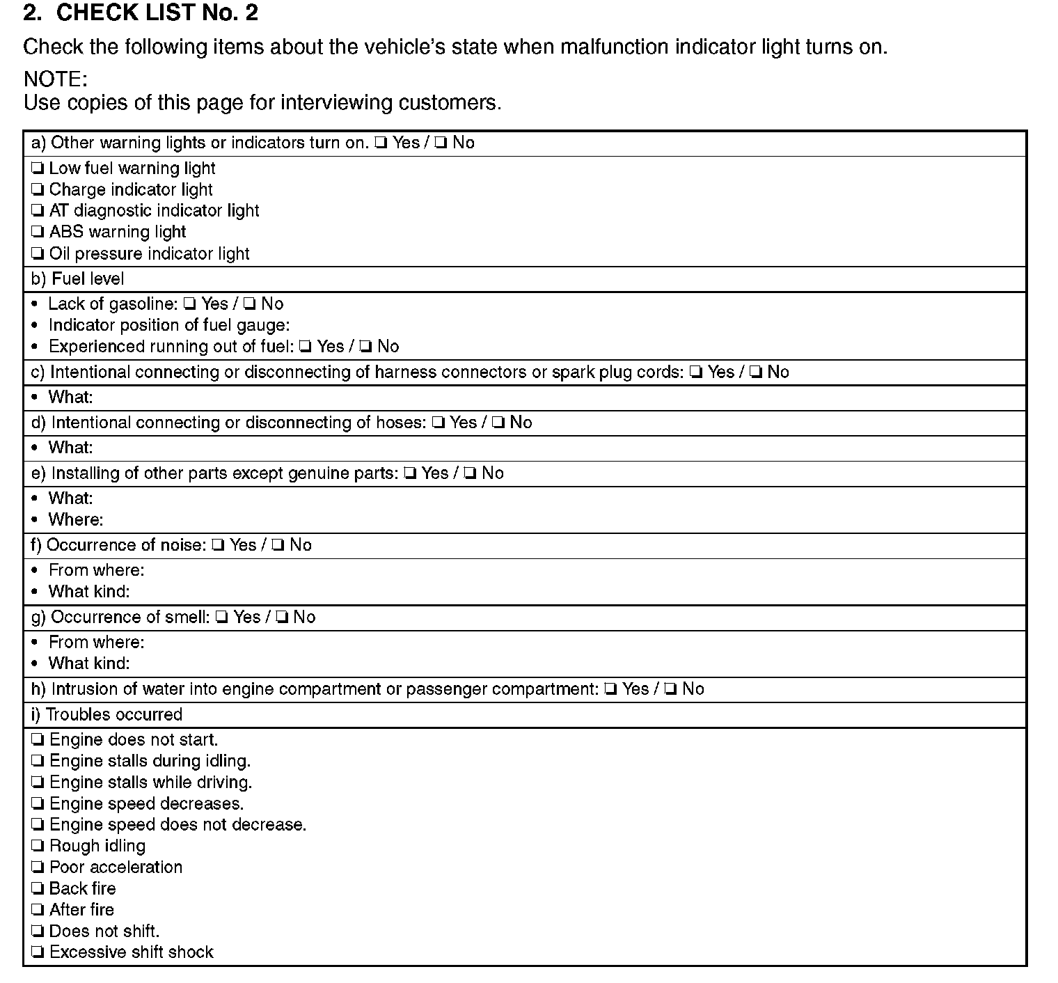 Check List No.2: