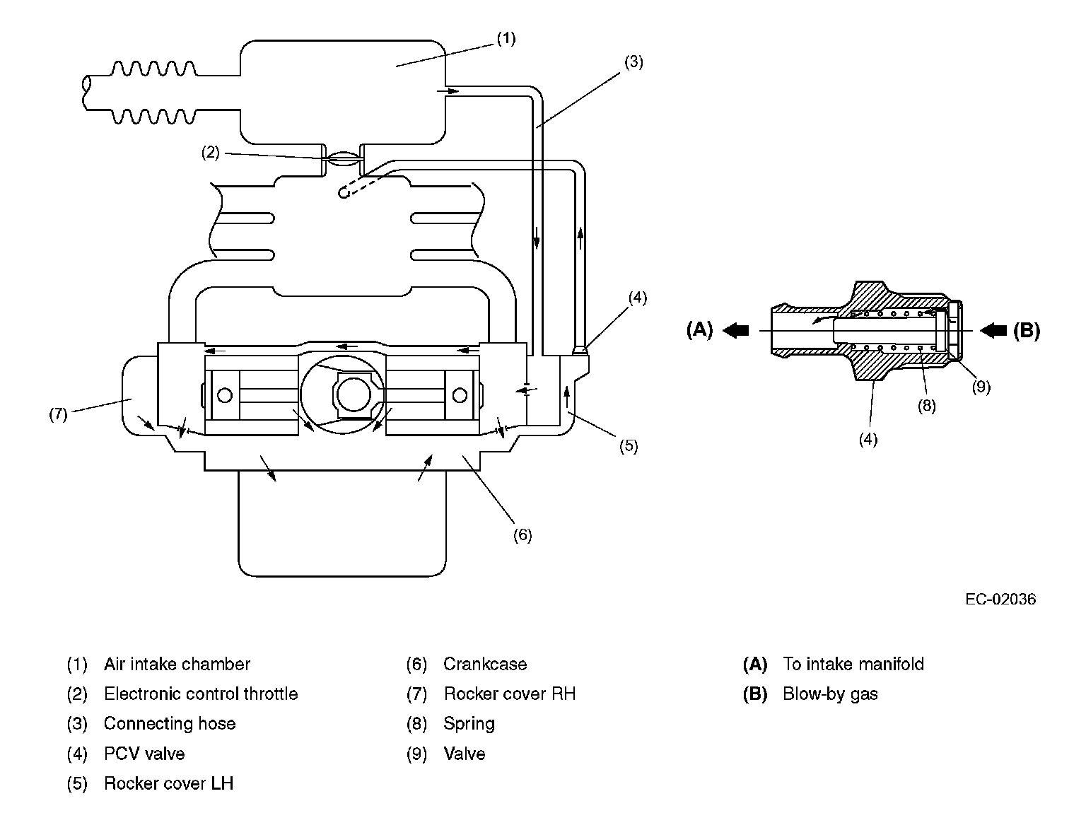 Crankcase Emission Control SystemThe positive crankcase ventilation (PCV) system prevents air pollution that will be caused by blowby gas being emitted from the crankcase.