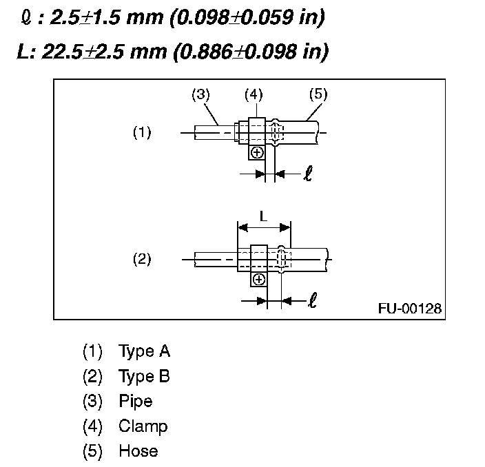 Fuel return hose: L = 22.5 ± 2.5 mm (0.886 ± 0.098 in)