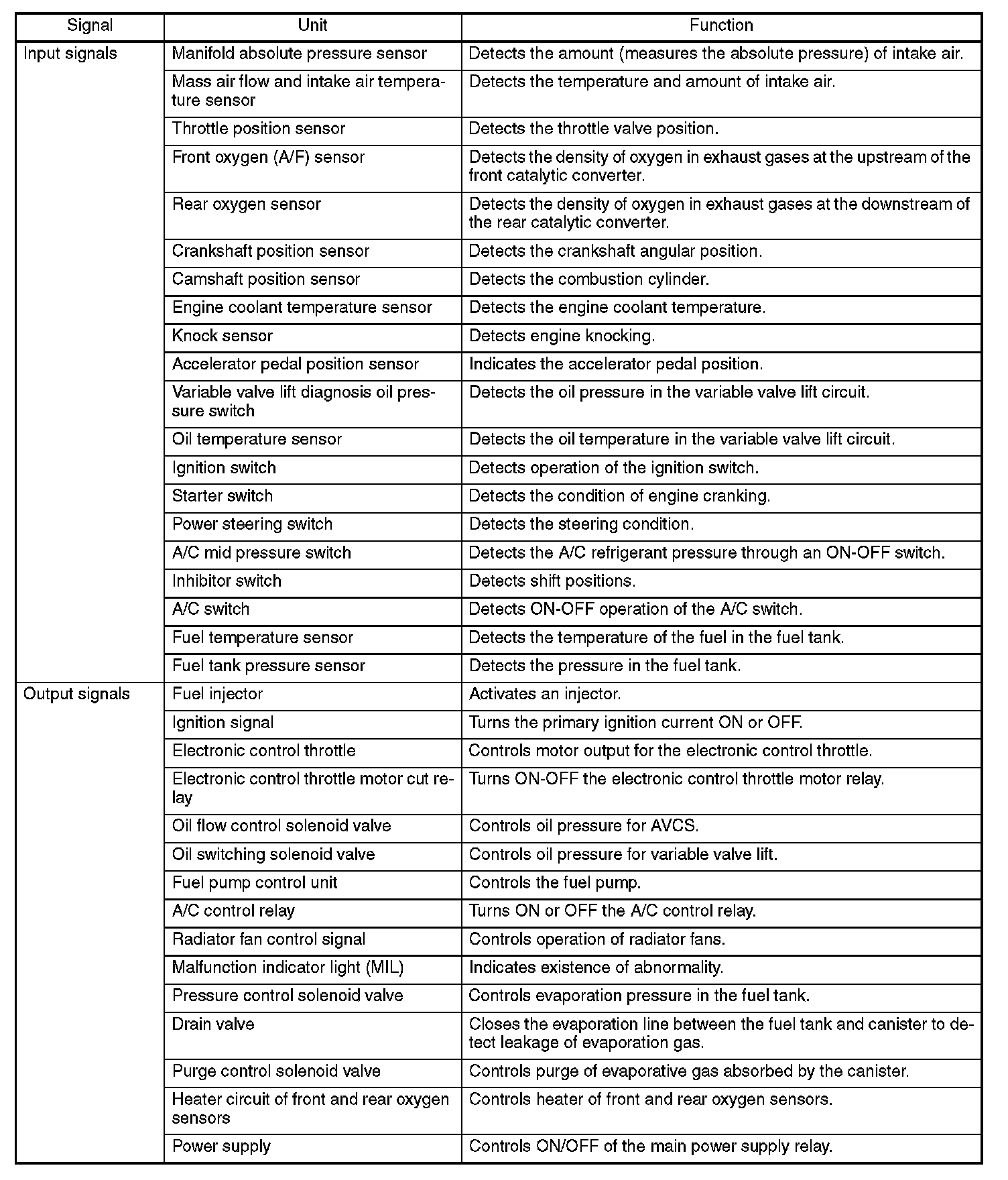 Input and Output Signals