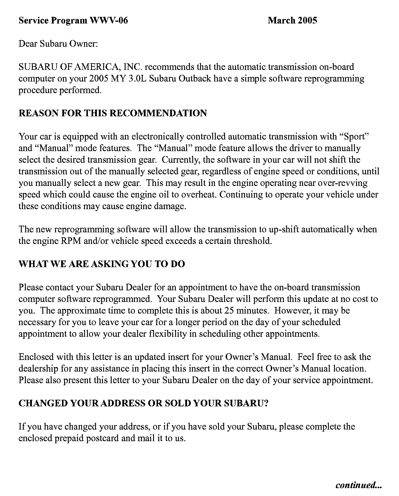 Outback F6-3.0L
