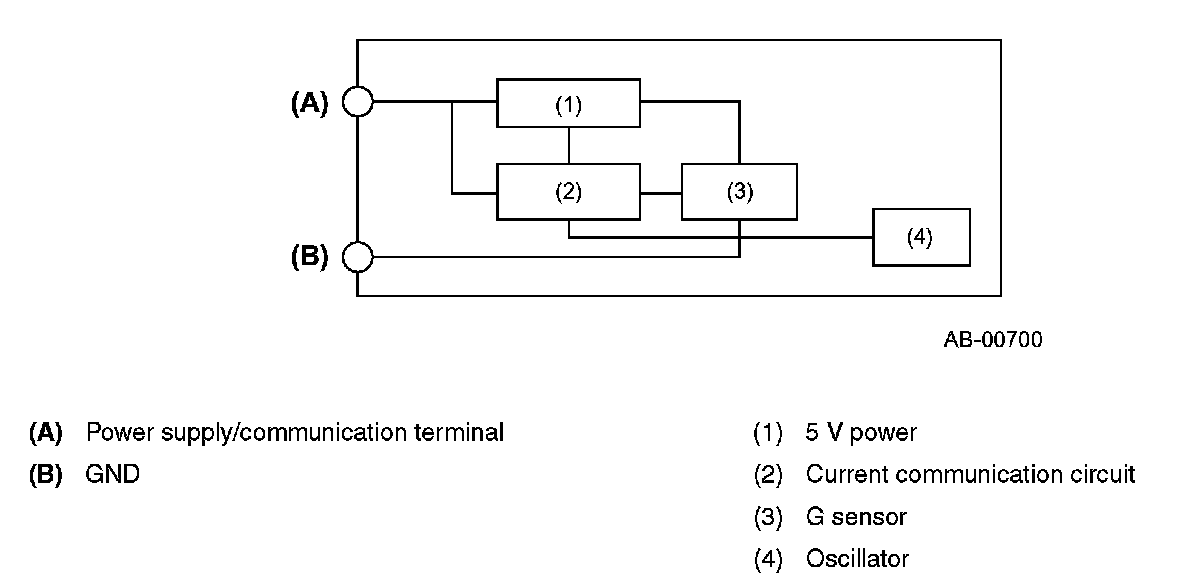 Inside of the sensor there is a mass weight, which works as a pendulum; if the sensor detects an impact acceleration exceeding a certain limit, the mass weight in the sensor moves to close the contacts and turn the switch ON.