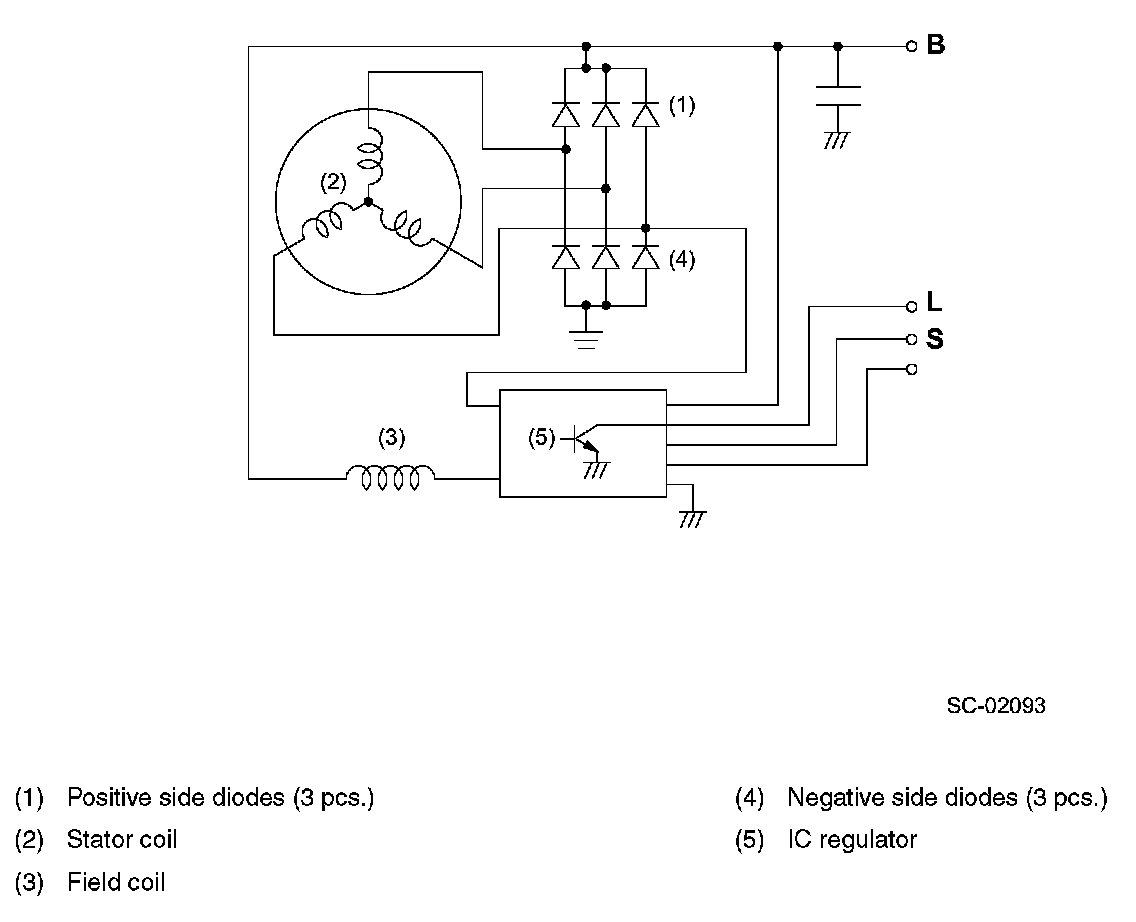 The generator has a built-in regulator which provides diagnostic functions in addition to a voltage regulating function as follows:
