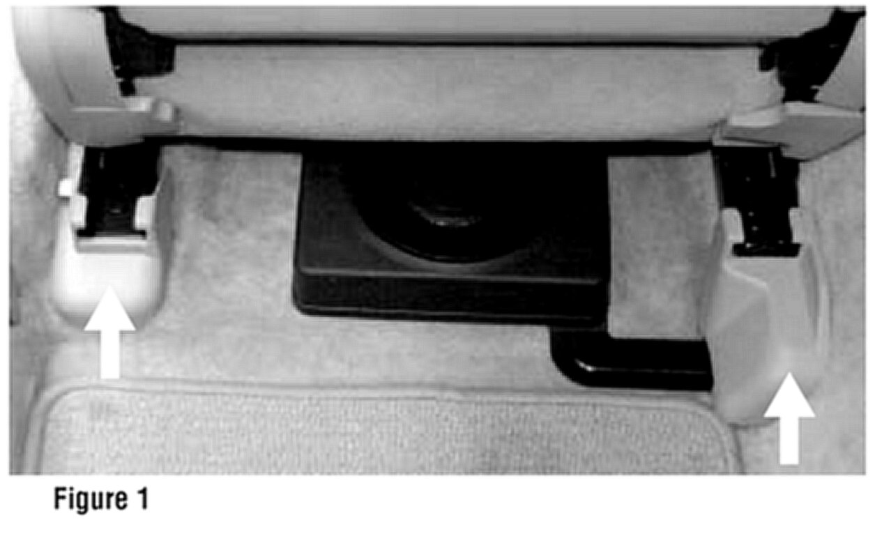 5) Remove the 2 drivers seat bolt covers at rear of slide rail (see Figure 1).