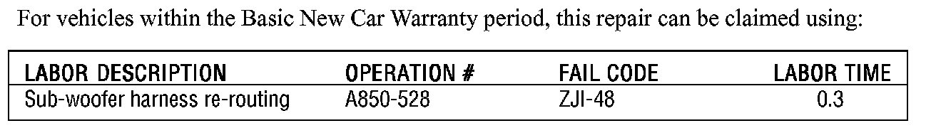 If you encounter a customer complaint that the (blue) sub-woofer wiring harness is exposed, use the following procedure to re-route the harness.